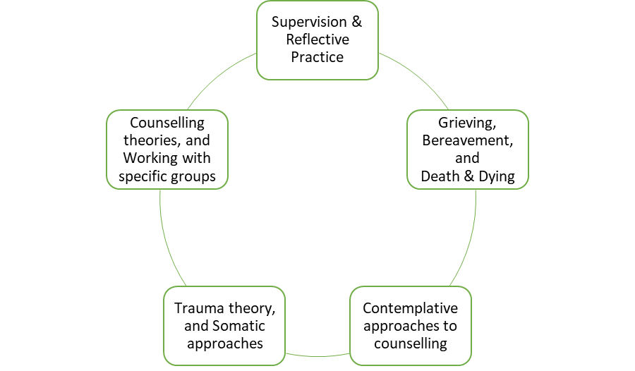 I undertake ongoing Professional Development (PD) to grow and refine my approach to walking alongside people. The broad themes of my ongoing PD are: